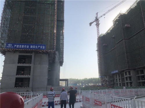 當(dāng)日下午,記者在金海嘉苑3標(biāo)段施工現(xiàn)場(chǎng)看到,高聳入云的塔吊有條不紊地作業(yè),施工車輛不時(shí)進(jìn)出,施工人員揮汗如雨緊張施工,一派忙碌的施工景象。工地環(huán)保措施也相當(dāng)?shù)轿唬瑯菍訃娏芗て鹚F彩虹,圍擋及通道噴淋霧狀灑水,車輛進(jìn)出必須清洗。在項(xiàng)目入口施工顯示牌上,噪音、揚(yáng)塵等指標(biāo)均嚴(yán)格控制在標(biāo)準(zhǔn)區(qū)間內(nèi)。