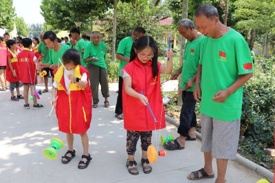 敬老院的老人們也不甘落后,孩子們表演結(jié)束后,老人們也向孩子們表演了拿手絕活——抖空竹。只見,小小的空竹在老人們手中忽高忽低、時(shí)快時(shí)慢,各種令人嘆為觀止的花樣動(dòng)作,猶如行云流水、連綿不斷,引得孩子們齊聲叫好。學(xué)生們紛紛上前,從老人手里接過(guò)空竹,一邊討教一邊聯(lián)系,歡聲笑語(yǔ)不時(shí)在敬老院上空回蕩。