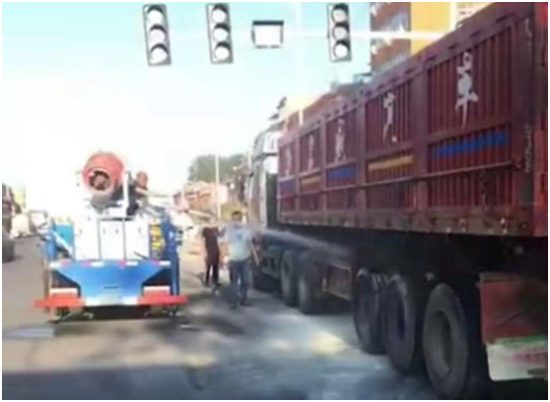 7月6日早上6時(shí)40分,一輛貨車由東至西行駛到西扶超限檢測(cè)站負(fù)責(zé)的環(huán)保檢測(cè)卡點(diǎn)時(shí)輪胎突然起火,執(zhí)法人員發(fā)現(xiàn)后,立即用車載喇叭喊話提醒司機(jī)停車,此時(shí)車輛正好停在值勤卡點(diǎn)紅綠燈處,一旦火勢(shì)不受控制,將給司機(jī)及周邊群眾帶來(lái)不可預(yù)測(cè)的危險(xiǎn)與損失,帶班站長(zhǎng)李建東一邊組織人員進(jìn)行救火,一邊通知站長(zhǎng)劉洪亮。得到警情后,劉洪亮站長(zhǎng)立即組織增援,同時(shí)指令張光輝、劉伯倫駕駛站內(nèi)高壓撒水車迅速趕往事故現(xiàn)場(chǎng),經(jīng)過(guò)共同努力,著火處被撲滅,避免了一場(chǎng)火災(zāi)事故的發(fā)生。事后,貨車司機(jī)十分感動(dòng),拉著執(zhí)法人員的手深表謝意。