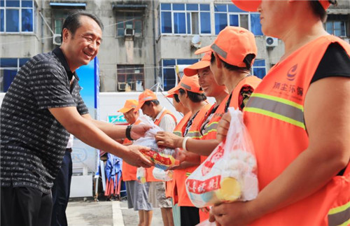 7月30日,扶溝縣總工會為酷暑堅守一線崗位的公安交警,環(huán)衛(wèi)工人,紡織工人,安保公司、美團外賣、申通快遞等企業(yè)公司工人送上礦泉水、洗潔精、毛巾等防暑降溫物品,受到歡迎。