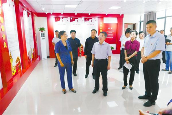 皇甫立新首先來到槐店回族鎮(zhèn)海樓社區(qū)。海樓社區(qū)位于縣城中心,是全縣政治經(jīng)濟文化中心。走進社區(qū),路兩旁紅旗飄飄,新時代、新思想、新目標(biāo)、新征程等具有時代特色的宣傳畫繪制在兩邊的墻壁上。社區(qū)廣場上“百村綜合治理辦公室”的牌子特別醒目,社區(qū)辦公室有關(guān)百村綜合治理的規(guī)章制度一應(yīng)俱全?;矢α⑿聦巧鐓^(qū)的工作給予充分肯定,并就工作中存在的問題給予指正,要求社區(qū)黨支部突出建好、管好、用好村委黨員會議室,突出主題,唱響主旋律。