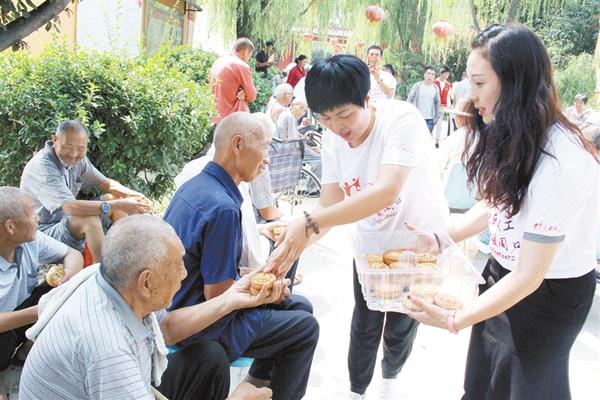 9月7日上午,周口市社工義工聯(lián)合會(huì)組織10多名志愿者,帶著月餅、牛奶、水果等來到商水縣平店鄉(xiāng)敬老院,為生活在這里的老人提前過中秋節(jié)。