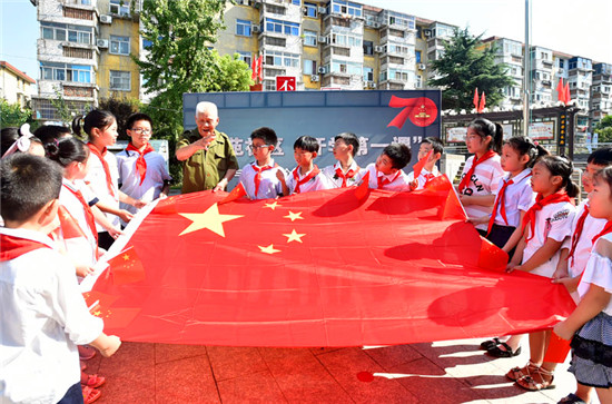 王文華為孩子講述國(guó)旗故事。莊文斌 攝