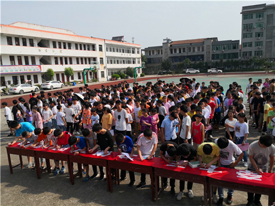 7月2日,沼山中學(xué)師生齊聚學(xué)校操場(chǎng),舉行“小手拉大手 同創(chuàng)文明城”活動(dòng)啟動(dòng)儀式?;顒?dòng)現(xiàn)場(chǎng),同學(xué)們整齊列隊(duì),依次上前,鄭重地在橫幅上簽上自己的名字,吹響學(xué)校新一輪創(chuàng)建攻堅(jiān)號(hào)角。