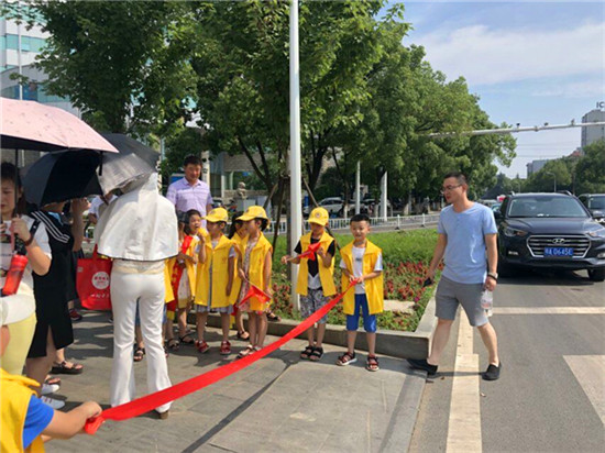 “叔叔,這個(gè)框子不能擺在路邊哦,垃圾也要倒在垃圾桶里,我給您發(fā)一個(gè)文明倡議書,您看一下”,“奶奶,不能橫穿馬路喲,紅燈停,綠燈行,要注意交通安全喲”......7月20日,35名小小志愿者來(lái)到古城社區(qū),參加古城社區(qū)小太陽(yáng)志愿服務(wù)隊(duì)創(chuàng)文主題活動(dòng)。一個(gè)個(gè)身穿黃色馬甲的小小身影成為馬路上一道靚麗的風(fēng)景線。