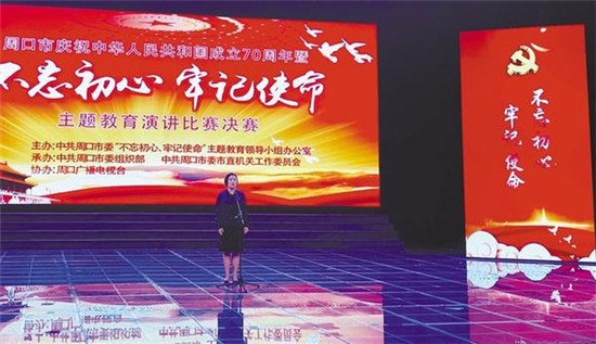 開發(fā)區(qū)積極響應(yīng)號(hào)召,組織人員參加全市慶祝中華人民共和國成立70周年暨“不忘初心、牢記使命”主題教育演講比賽。開發(fā)區(qū)機(jī)關(guān)第一黨支部黨員李媛媛經(jīng)過激烈角逐,順利進(jìn)入決賽。記者 王泉林 攝