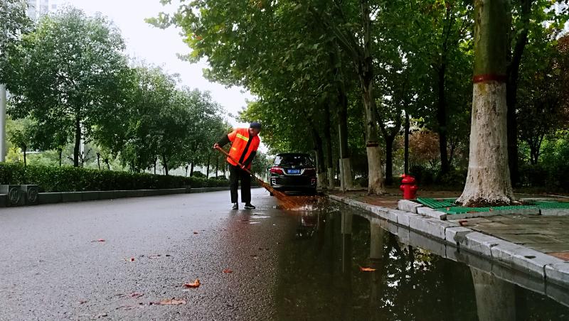 連續(xù)幾日的陰雨結(jié)束后,10月7日一大早,環(huán)衛(wèi)工人們就開始清理中心城區(qū)道路上的積水和落葉,為我市“創(chuàng)衛(wèi)”工作貢獻(xiàn)一份力量。
