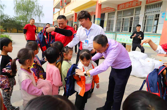 當(dāng)日上午,周大福集團(tuán)組織了15名員工組成義工隊,在周口區(qū)域負(fù)責(zé)人王保安的陪同下,帶著總價值3萬余元的300套愛心物資,送到學(xué)生手中?,F(xiàn)場,他們與學(xué)生愛心互動、親切交流,為學(xué)生們背上書包、送上文具,關(guān)心學(xué)生生活和學(xué)習(xí)情況。當(dāng)了解到學(xué)校資金緊張,師生還沒有統(tǒng)一服裝時。岳磊等人表示,將向上級申請,下一步積極為該校師生解決工作裝和校服問題。對此,徐莊小學(xué)師生熱烈鼓掌表示感謝。
