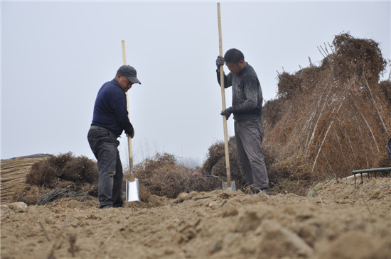 他從最早用尖頭鋼鍬開始,逐漸改為扁頭鋼鍬,再改用目前的鋼筒鍬。耿金中說,挖山藥是一個(gè)體力活,也是一項(xiàng)技術(shù)活,挖山藥多少跟個(gè)人技術(shù)熟練程度有關(guān),因?yàn)樯剿幒艽啵昧Ψ执?、下鍬角度及深淺不合適都易造成山藥折斷,影響品質(zhì)。