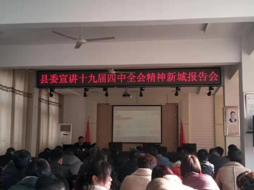 12月2日上午,鄲城縣委宣講團(tuán)成員邢偉到新城辦事處進(jìn)行十九屆四中全會精神宣講。新城辦事處黨工委書記王一博主持報告會。辦事處全體干部、直屬單位負(fù)責(zé)人、社區(qū)“三委”班子成員參加了報告會。