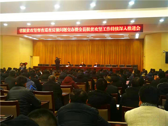 1月3日,扶溝縣召開省脫貧攻堅(jiān)督查巡查問題交辦暨全縣脫貧攻堅(jiān)工作推進(jìn)會??h委副書記、縣政法委書記詹凱主持會議??h委常委、縣政府黨組成員段然,縣委常委、副縣長趙紅亮出席會議??h直各單位一把手、相關(guān)行業(yè)部門分管扶貧工作的副職,各鄉(xiāng)鎮(zhèn)(街道)黨(工)委書記、分管扶貧工作的副職、扶貧辦主任,81個貧困村的黨支部書記、駐村第一書記參加會議。