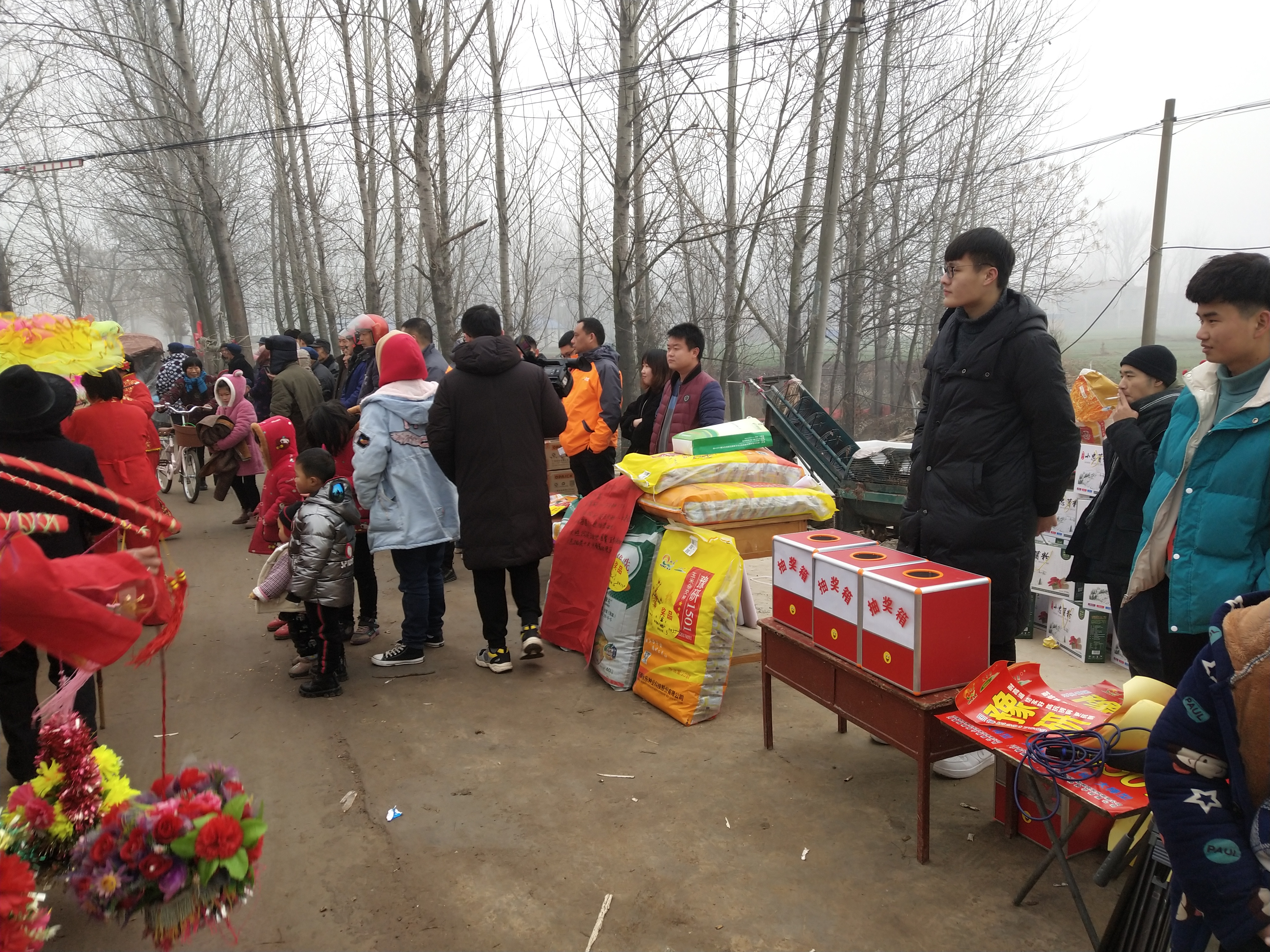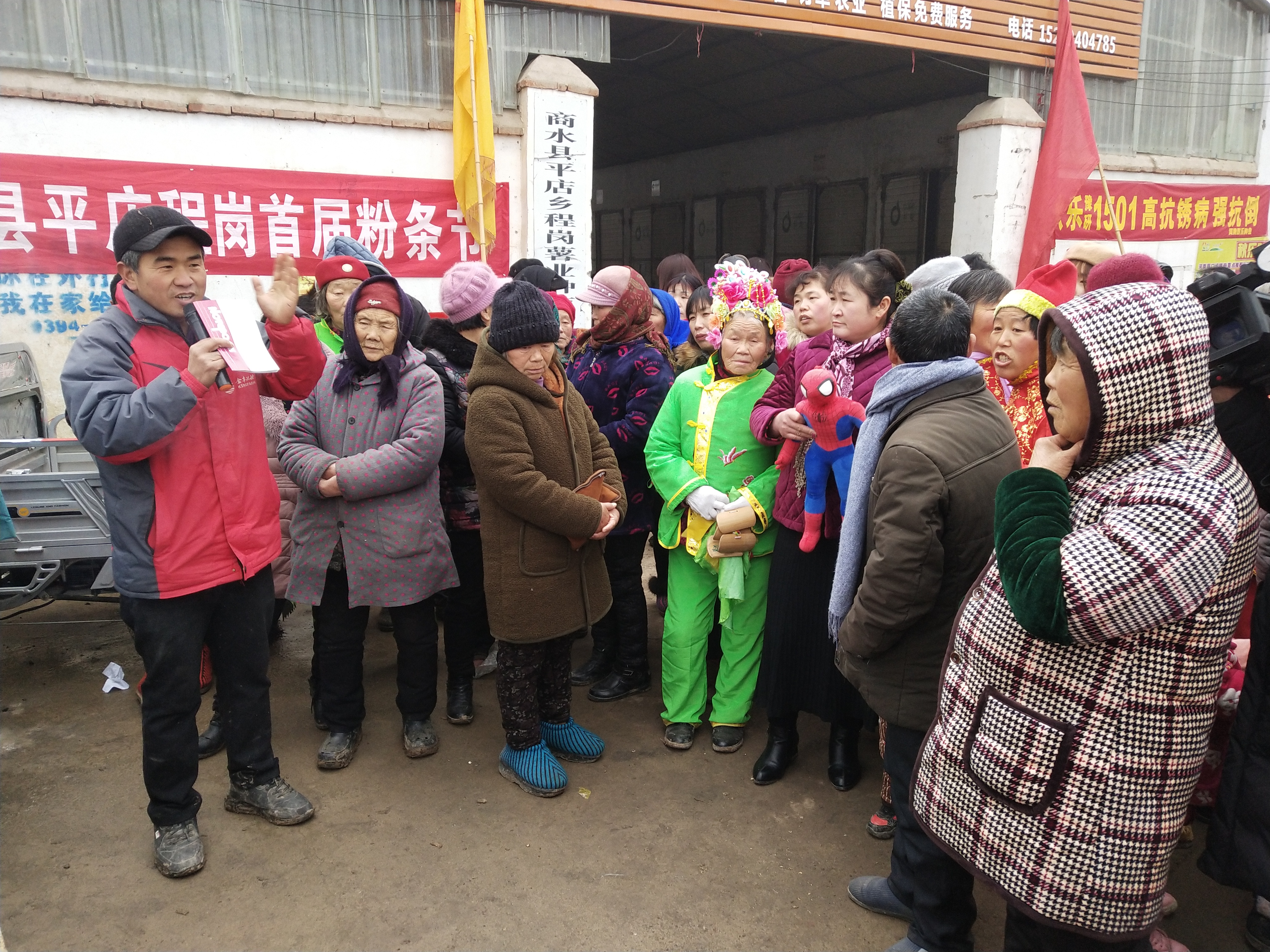 沒(méi)有鮮花、沒(méi)有禮炮、沒(méi)有舞臺(tái)、沒(méi)有相關(guān)單位參加、沒(méi)有任何領(lǐng)導(dǎo)講話(huà),空地上只有一些民間藝人在扭秧歌、挑花籃、跳廣場(chǎng)舞;大門(mén)口簡(jiǎn)單設(shè)置了幾個(gè)種子肥料小展臺(tái)和幾個(gè)抽獎(jiǎng)箱;屋內(nèi)庫(kù)房?jī)?nèi)擺滿(mǎn)了成箱成捆子的粉條;不遠(yuǎn)處的路邊地頭扯起來(lái)的長(zhǎng)繩掛滿(mǎn)了剛出“凍房”的濕粉條。