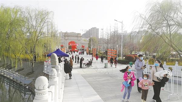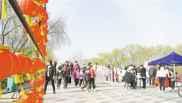 記者沿周口公園主干道向里走看到,路旁的花燈鮮艷奪目,如意湖邊楊柳依依,園內(nèi)迎春花開、玉蘭飄香,滿園春色如期而至。記者發(fā)現(xiàn),游客們?nèi)齼蓛傻?,主要以家庭為單位一起游玩,沒有出現(xiàn)扎堆現(xiàn)象。