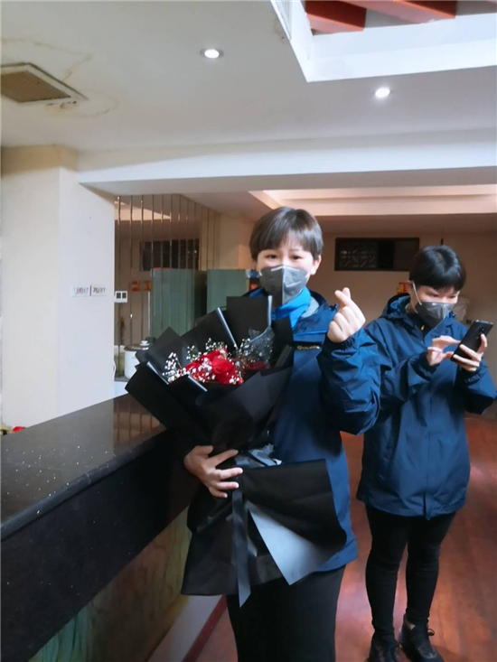 隊(duì)伍集合完畢,接下來的一幕令許聽聽始料未及。來自當(dāng)?shù)厣鐓^(qū)的工作人員,手捧蛋糕、鮮花,唱著生日歌,來到許聽聽面前,向她致以生日祝福。特殊時(shí)期,身處抗疫一線,忙于照顧病人,許聽聽此前對自己的23歲生日沒有任何憧憬,她告訴記者,其實(shí)她當(dāng)天沒想起來是她的生日,面對突如其來的生日祝福,許聽聽說:“當(dāng)時(shí)的心情既激動(dòng)又感動(dòng)。”。