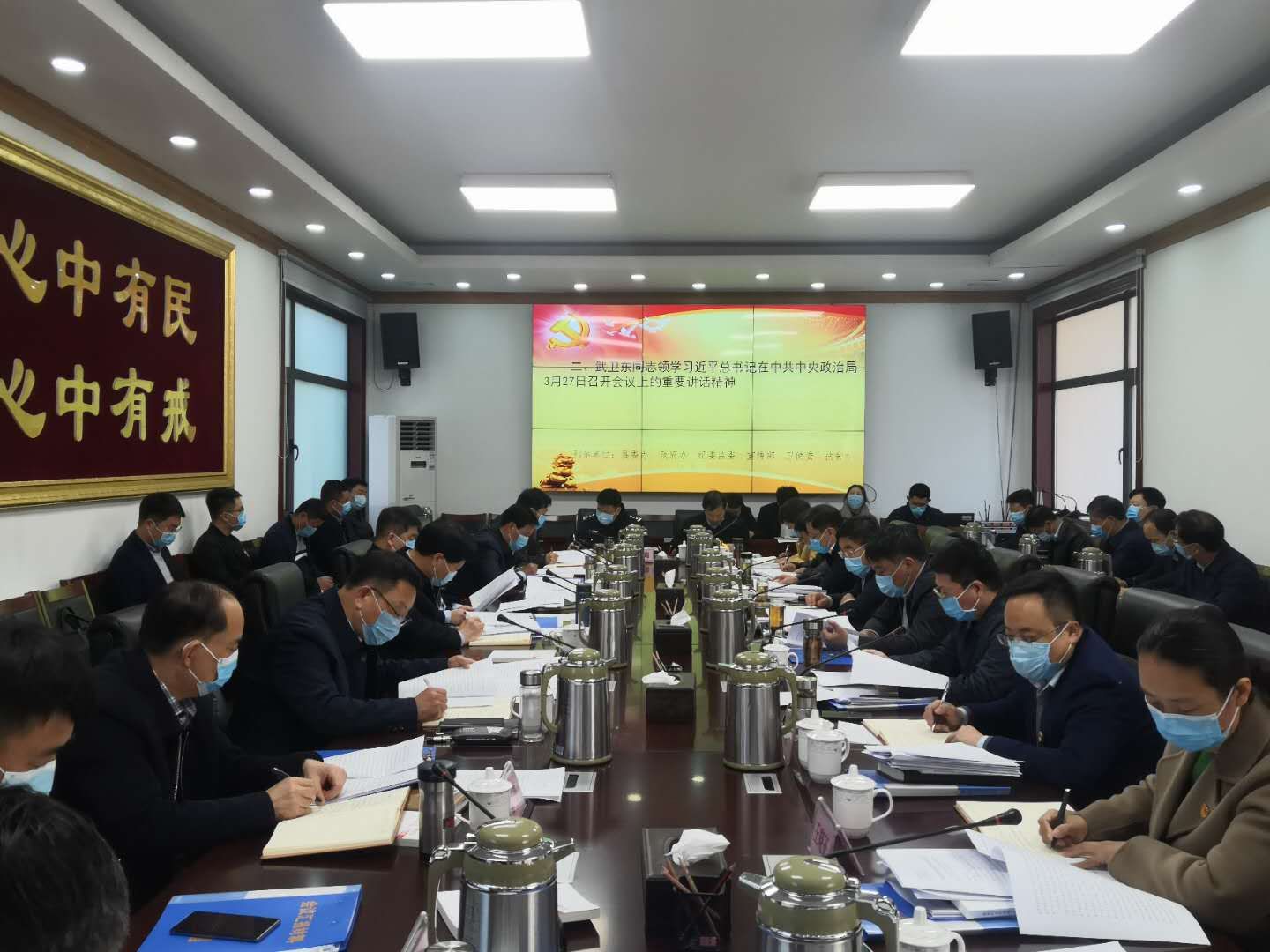 為鞏固“不忘初心、牢記使命”主題教育成果,認(rèn)真學(xué)習(xí)貫徹習(xí)近平總書(shū)記3月27日在中央政治局常委會(huì)議上的重要講話精神和中共中央辦公廳印發(fā)的《黨委(黨組)落實(shí)全面從嚴(yán)治黨主體責(zé)任規(guī)定》,3月30日上午,鹿邑縣委書(shū)記梁建松主持縣委理論學(xué)習(xí)中心組2020年第二次集中學(xué)習(xí)。李剛、許四軍、李國(guó)際、雷申、宋濤、楊所超、陸志杰、韓林、侯自峰、閆家明、武衛(wèi)東、王曉征等縣四個(gè)班子領(lǐng)導(dǎo)參加學(xué)習(xí)。