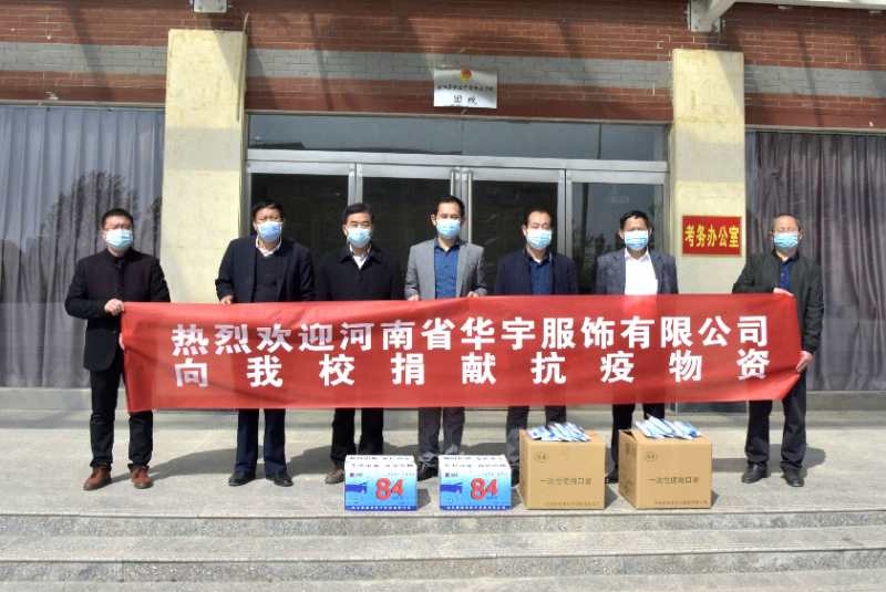 校園里的花朵迎風(fēng)綻放,但這個春天卻缺少了師生矯健的身影。4月13日,在周口市部分中學(xué)陸續(xù) 復(fù)課之際,河南省華宇服飾有限公司董事長王華偉來到淮陽區(qū)實驗高中,為該校捐贈一次性口罩2000只 、84消毒液2箱。據(jù)了解,為助力學(xué)校打贏疫情防控阻擊戰(zhàn),連日來,華宇服飾有限公司已向太康、扶溝 、淮陽等縣、區(qū)部分中學(xué)捐贈一次性口罩20萬只,價值30多萬元。