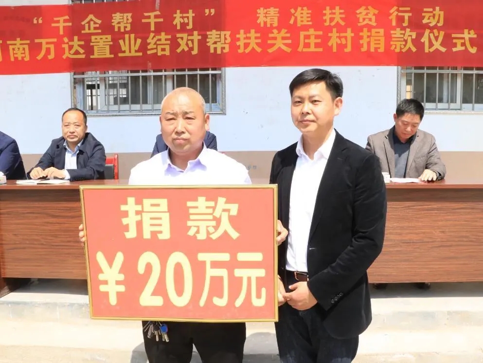 4月13日上午,河南萬達(dá)置業(yè)有限公司結(jié)對幫扶捐款儀式在市城鄉(xiāng)一體化示范區(qū)許灣鄉(xiāng)關(guān)莊行政村隆重舉行?,F(xiàn)場,該公司為關(guān)莊行政村捐款20萬元助力脫貧攻堅(jiān)。