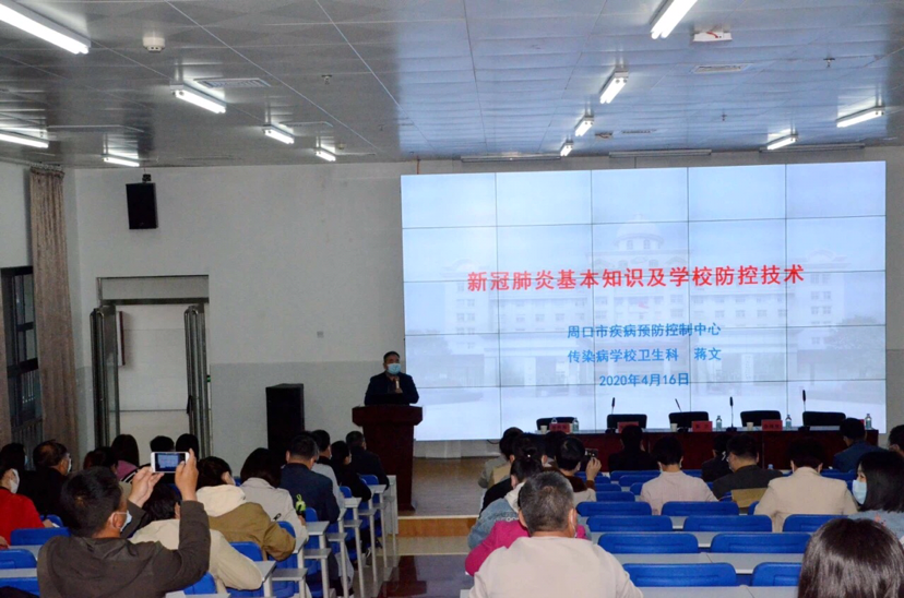 會議邀請周口市疾病防控中心專家,就新冠肺炎基本知識和防控措施進行了集中培訓,并針對開學前、開學當日和開學后的防控工作提出意見和建議。