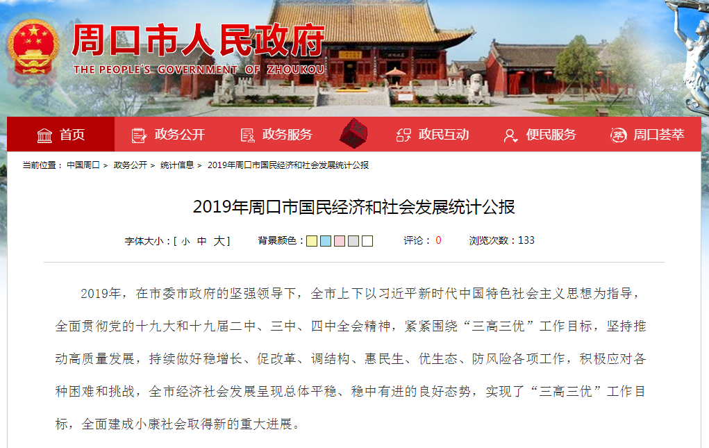 《2019年周口市國(guó)民經(jīng)濟(jì)和社會(huì)發(fā)展統(tǒng)計(jì)公報(bào)》,