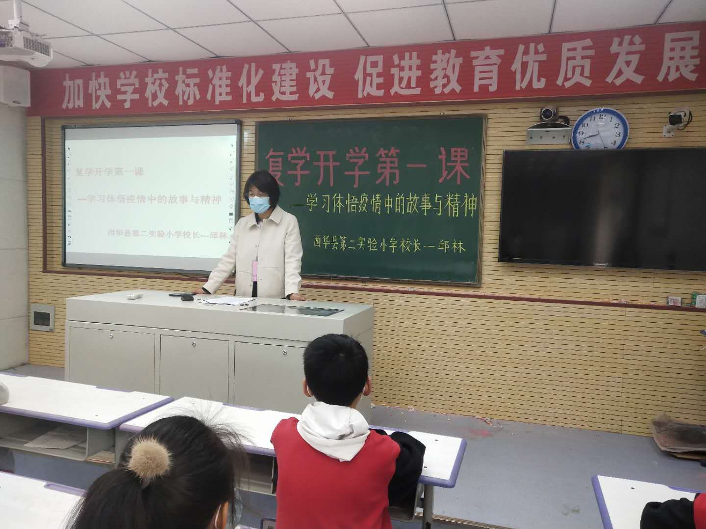 該校校長邱林為全校4、5、6年級1千多名師生上復(fù)學(xué)第一課,重點講述疫情之中感動 、疫情帶給我們的啟示。