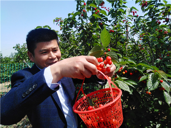 時下,武灣村近千畝櫻桃園里棵棵樹上滿枝碩果,顆顆勻圓,與枝葉互相掩映,濃艷流鮮。信手采擷嘗鮮,便有“四月朱櫻乍熟,甘露一般清味”的切身體驗。