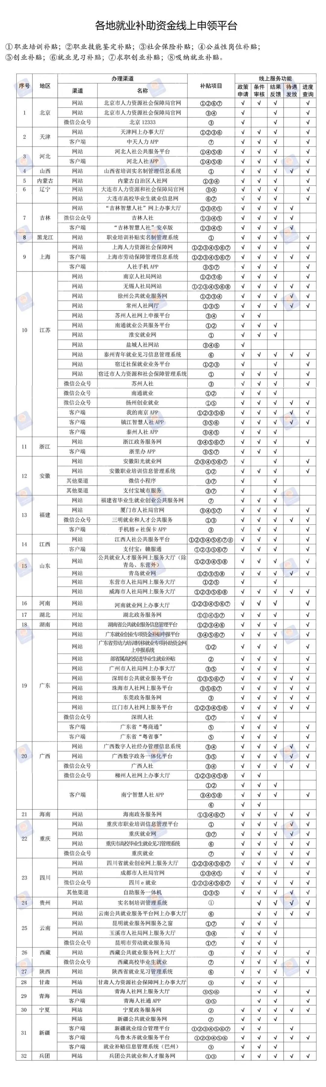 近日,人社部、財政部印發(fā)《關(guān)于發(fā)布就業(yè)補貼類政策清單及首批地方線上申領(lǐng)平臺的通知》,梳理了鼓勵企業(yè)吸納就業(yè)和支持勞動者就業(yè)創(chuàng)業(yè)的就業(yè)補貼類政策清單,并匯總了各地線上申領(lǐng)平臺。