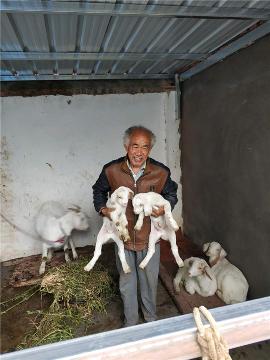 捐贈(zèng)的綿羊下了崽,毛立明臉上樂開了花。