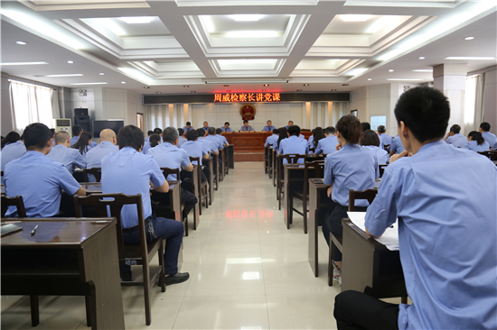 近日,項城市人民檢察院黨組書記、檢察長周威為全院干警講“強化四個意識,推進機關黨建上水平”專題黨課。