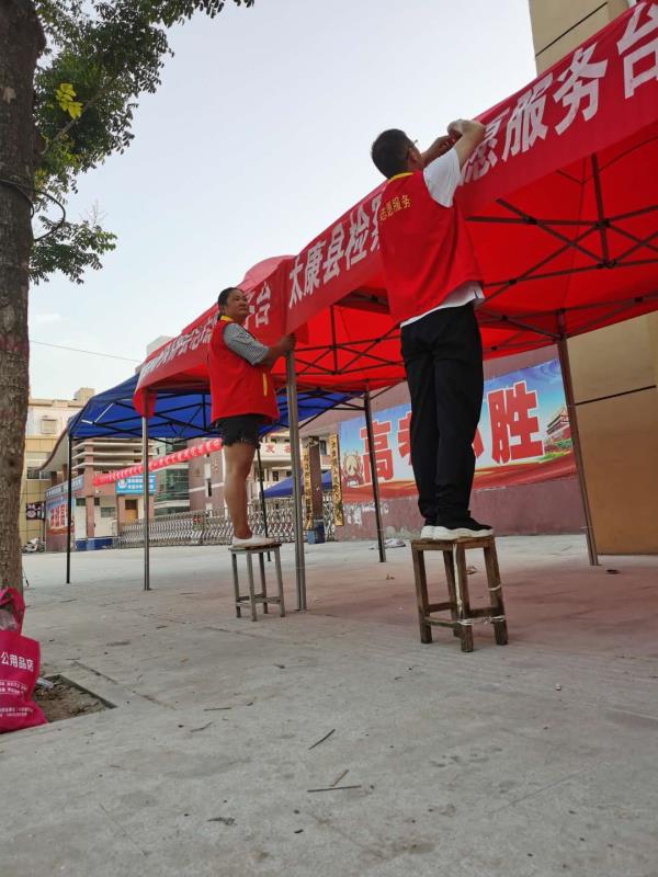 6日下午3時(shí)許,鄭雪艷和王作宇二人被安排到太康縣華夏外國(guó)語(yǔ)高考考點(diǎn)負(fù)責(zé)為考生和家長(zhǎng)搭建11個(gè)茶水棚?!跋挛?點(diǎn)正是一天中最熱的時(shí)候,考點(diǎn)附近也沒(méi)有樹(shù)蔭?!碧悼h網(wǎng)信辦副主任高一麟回憶說(shuō),要在天黑之前搭建好11個(gè)茶水棚,對(duì)于鄭雪艷和王作宇兩人來(lái)說(shuō)并非易事。