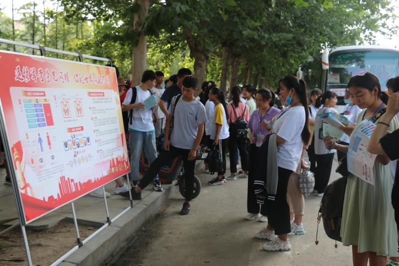 在該縣各標(biāo)準(zhǔn)化高考考點征兵宣傳現(xiàn)場,人頭攢動、熱鬧非凡。“好男兒,來當(dāng)兵”大紅條幅和“把忠心獻給祖國,把青春獻給軍營”“參軍報國盡義務(wù),熱血青年競風(fēng)采”的大型宣傳牌格外引人注目,內(nèi)容豐富的征兵宣傳展板一字排開,《征兵宣傳手冊》《大學(xué)新生應(yīng)征入伍宣傳單》《征兵政策宣傳解讀手冊》等征兵宣傳資料擺放在咨詢臺上一目了然,吸引了眾多的考生和家長駐足觀看,圍著咨詢臺詢問有關(guān)征兵事宜。