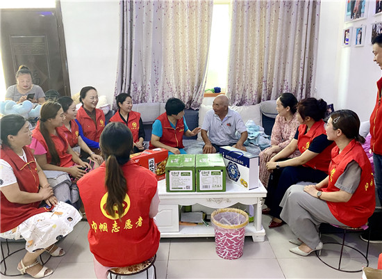 當(dāng)日下午,志愿者及愛(ài)心商家一行20多人,在駐村干部及村支部書(shū)記陪同下,來(lái)到遲營(yíng)鄉(xiāng)順河村走訪(fǎng)慰問(wèn)退伍老兵和老黨員,為他們送去豆奶、八寶粥、飲料、糕點(diǎn)等慰問(wèn)品。大家不顧酷暑高溫天氣,走村入戶(hù),一家一家地走訪(fǎng),為退伍老兵送去節(jié)日的問(wèn)候,聆聽(tīng)老兵講述那艱苦卓絕的戰(zhàn)爭(zhēng)和轟轟烈烈社會(huì)主義建設(shè)的歲月,讓他們感受到黨和政府及社會(huì)的關(guān)懷關(guān)愛(ài),受到好評(píng)。