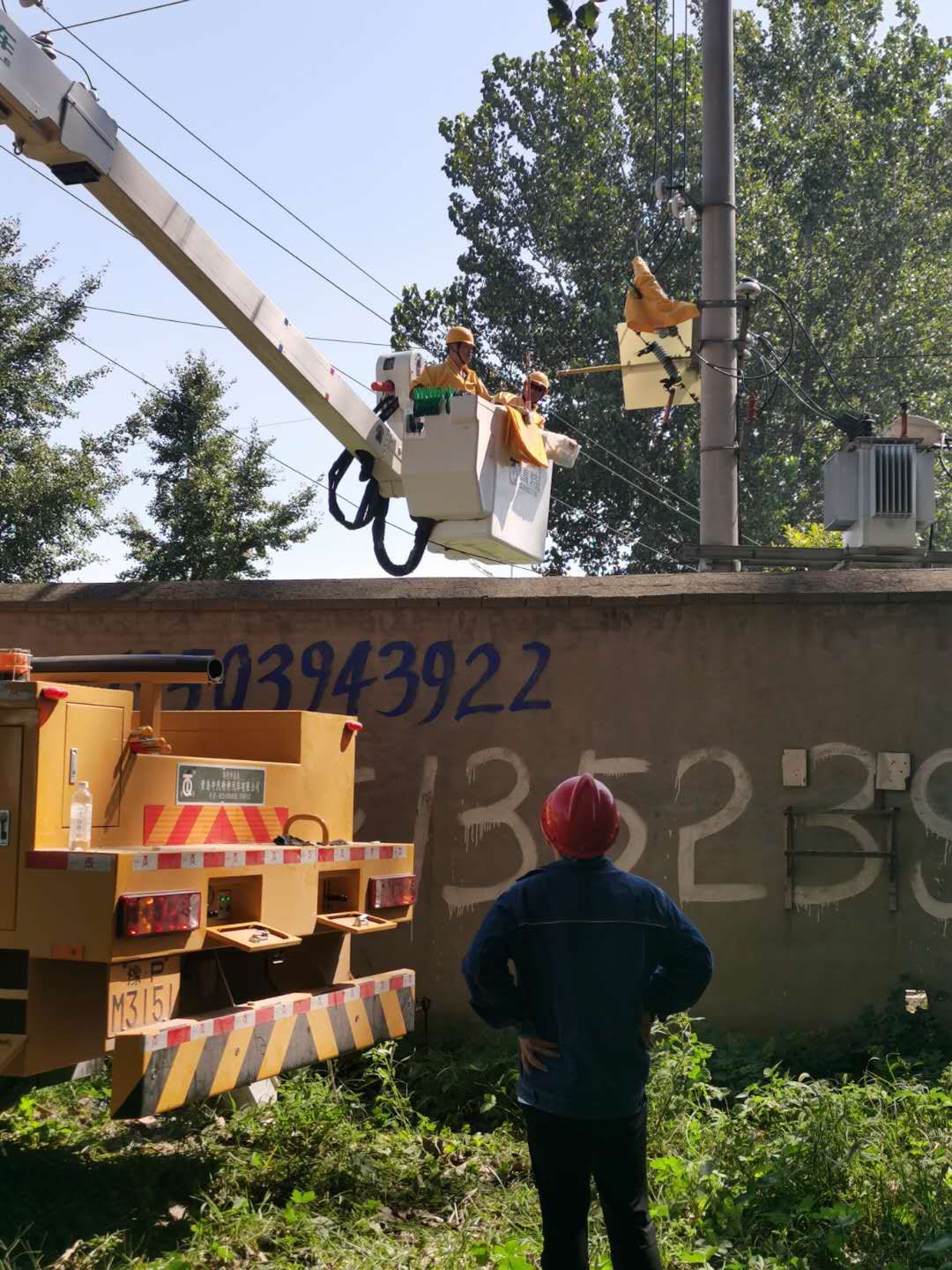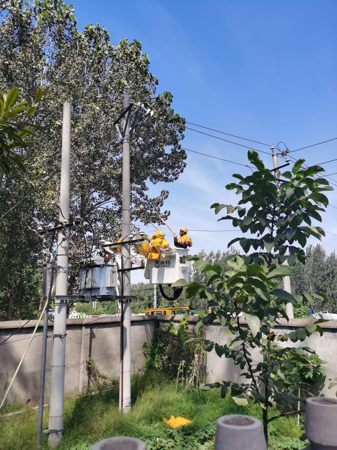 9月5日中午,“秋老虎”發(fā)威,燠熱難耐。國網(wǎng)西華縣供電公司城關供電所工作人員穿著長袖工作服,頭戴安全帽,冒酷暑進行高空搶修作業(yè)。