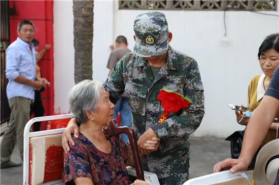 當(dāng)日,新兵們身著嶄新軍裝,胸前佩戴大紅花,軍姿筆挺地站列家長兩側(cè),聆聽政委李峰的講話:“你們從體檢、政考、役前教育訓(xùn)練、封閉隔離等環(huán)節(jié)中脫穎而出。在這即將奔赴軍營之際,對你們和家長表示祝賀,希望你們要不忘初心,堅(jiān)定從軍報(bào)國的信念,把滿腔的熱情轉(zhuǎn)化為報(bào)國之志;要把握機(jī)會,積極主動參加訓(xùn)練,爭當(dāng)優(yōu)秀士兵、班長骨干,在軍營建功立業(yè);要心系故里,牢記家鄉(xiāng)親人殷切期盼,為家鄉(xiāng)爭光添彩。”