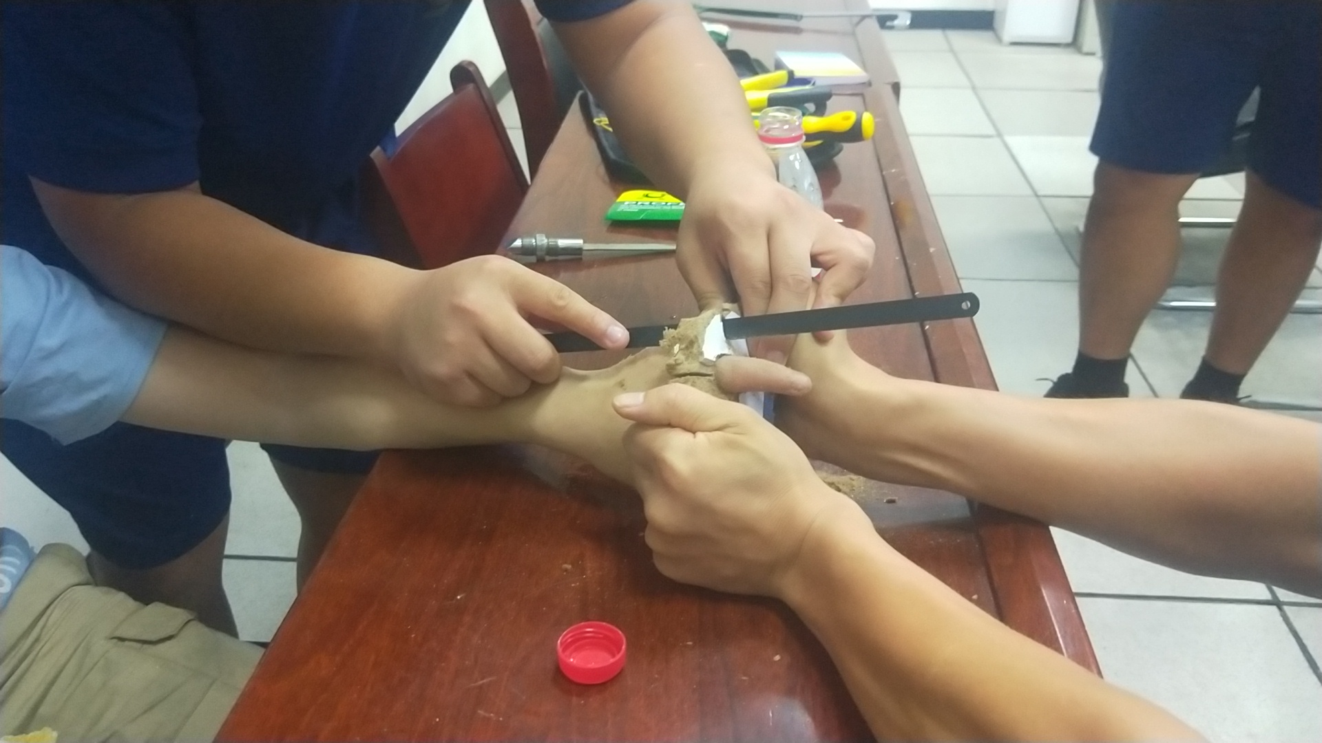 看到救援人員,小男孩十分害羞,有點(diǎn)不好意思?!拔铱醋雷由嫌袀€(gè)孔,就是想看看手指能不能伸進(jìn)去,結(jié)果就拔不出來(lái)了?!本仍藛T經(jīng)觀察發(fā)現(xiàn),小男孩左手無(wú)名指被卡在課桌木板上的小孔里,木板已被裁下,木板材質(zhì)為鋸末壓縮板,此時(shí)小男孩手指被卡部位周圍已發(fā)生腫脹必須馬上處理。救援人員利用鋼鋸將木板一點(diǎn)點(diǎn)鋸開,然后又用鉗子用力將木板夾開,經(jīng)過(guò)3分鐘救援,成功將禁錮小男孩手指的木板摘除??吹侥景灞粡氖稚先∠?,男孩長(zhǎng)長(zhǎng)地舒了口氣。