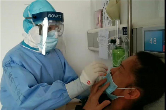 眾所周知,采集咽拭子、鼻咽拭子標(biāo)本是非常危險(xiǎn)的易感染密切接觸行為,同時(shí)對(duì)患者來(lái)說(shuō)也非常不適。在病區(qū)采集時(shí),胡奔奔總是動(dòng)作輕柔,邊采集邊輕聲安撫患者,緩解患者緊張情緒。而不少患者因?yàn)楦袘延诤急嫉南ば恼疹櫍偸菑?qiáng)行壓抑著自己的癥狀,盡量不發(fā)出咳嗽,避免對(duì)胡奔奔造成更大危險(xiǎn)。