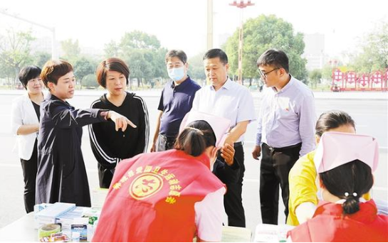 本報訊(記者 徐松 通訊員 侯同廷)國慶節(jié)前夕,鄲城縣衛(wèi)健委根據(jù)國家衛(wèi)生健康委開展2020年“服務百姓健康行動”全國大型義診活動周的部署,組織4家醫(yī)健集團總醫(yī)院相關科室醫(yī)護人員在縣世紀廣場開展義診活動。副縣長肖煒、縣衛(wèi)健委主任付登霄等到義診現(xiàn)場指導工作(如圖)。