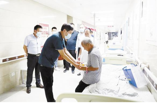 “雙節(jié)”當天,鄲城縣第二醫(yī)健集團縣中醫(yī)院院長水新華,副院長史昊、仵好金、崔冬一行分別到臨床、醫(yī)技等科室慰問節(jié)日值班人員和住院患者,轉達了鄲城縣衛(wèi)健委黨組書記、主任付登霄對大家的節(jié)日祝福,并向“援鄂英雄”胡奔奔送去節(jié)日慰問,向住院患者送去月餅和祝福。記者 徐松 通訊員 張洋 攝