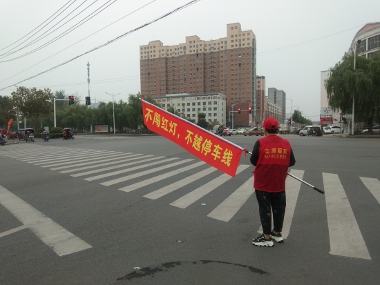 10月12日,記者在周口中心城區(qū)交通大道與建安路交叉口看到,幾名志愿者手中的小紅旗“加長了”,上面還寫有“不闖紅燈,不越停車線”的溫馨提示語。路過此處,不少市民把目光投在了這個加長的小紅旗上,有的還輕聲讀出紅旗上的標語。通過這些溫馨提示語,讓市民在潛移默化中逐漸增強文明出行的意識。記者 張洪濤 攝 ②5