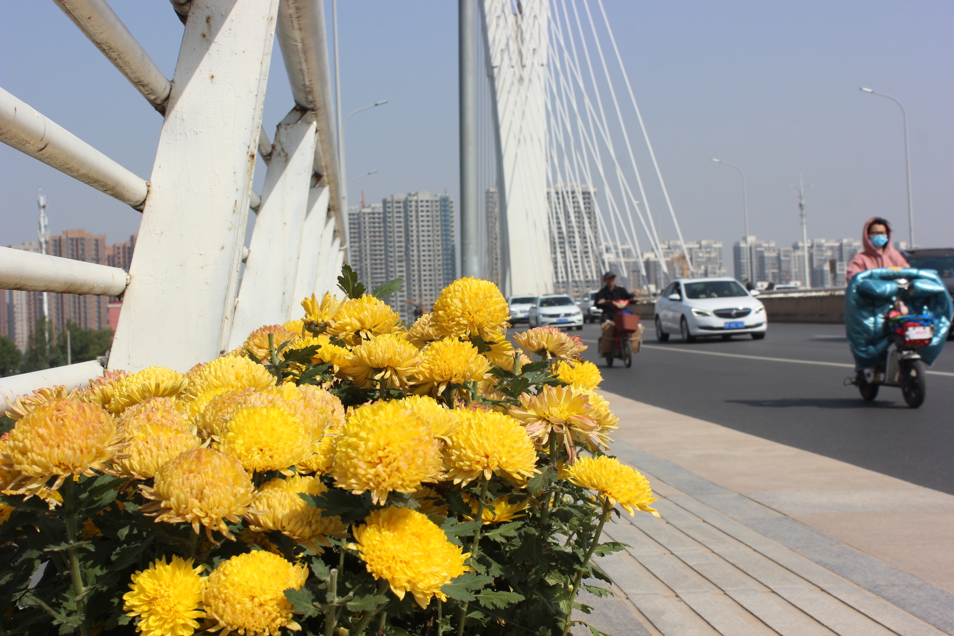 圖2 大慶路橋上金菊盛開更顯秋季生機(jī) 見習(xí)記者 孫靖 攝