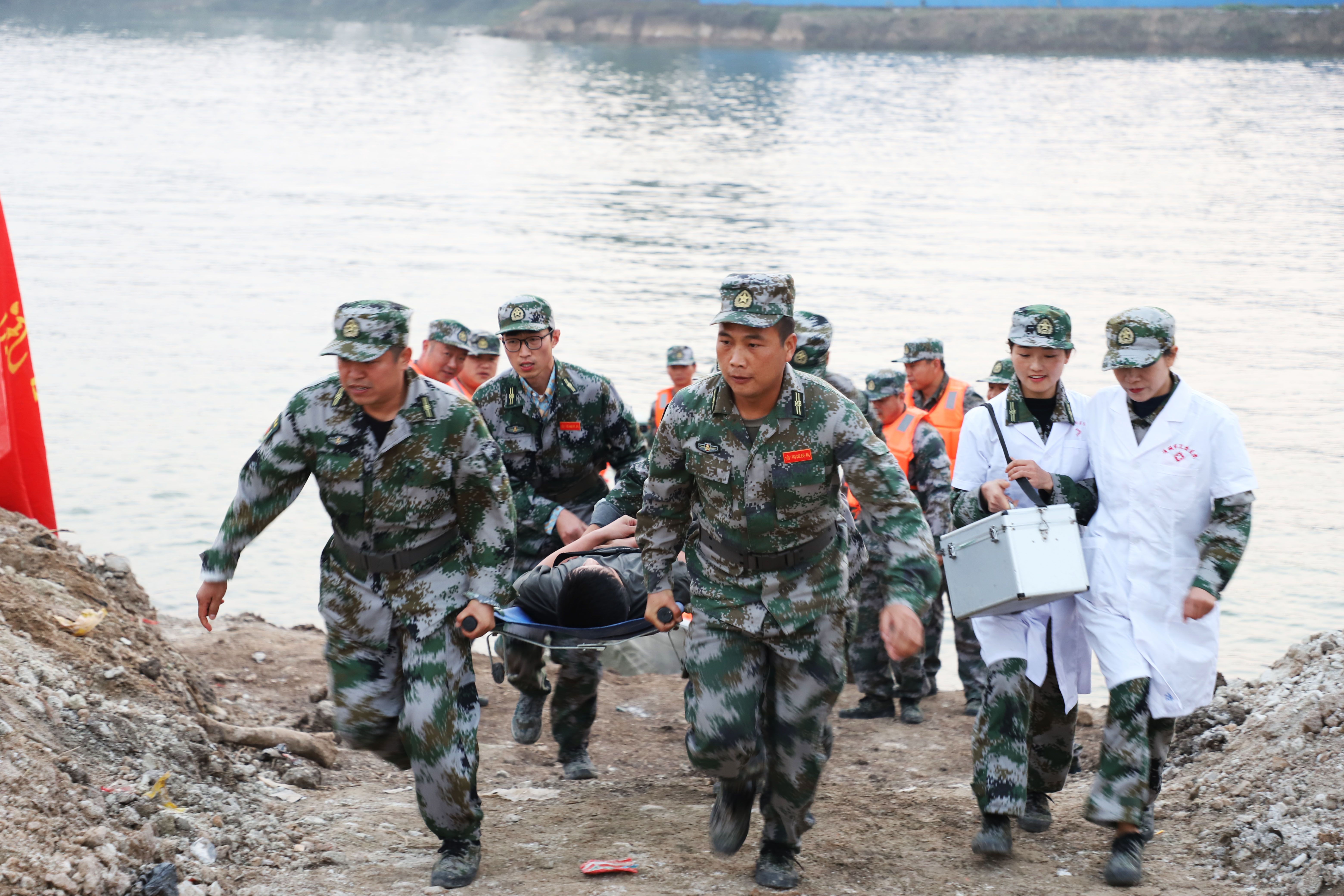 演練分三個環(huán)節(jié),一是隊員駕駛沖鋒舟搶救被洪水圍困的群眾;二是用無人機和沖鋒舟立體搜索落水群眾;三是使用拋投器和沖鋒舟對溺水人員進行救援,然后由醫(yī)療救護人員現(xiàn)場進行心肺復(fù)蘇,120救護車緊急將人送往醫(yī)院。通過演練,讓每個隊員都熟練掌握沖鋒舟的操作技能,使用拋投器投送救生圈的方法和要領(lǐng),無人機搜救的技巧運用,以及現(xiàn)場緊急醫(yī)療救護的本領(lǐng)和方法,從而從實戰(zhàn)的角度,進一步錘煉民兵在防汛抗洪中緊急應(yīng)變和處理各種復(fù)雜問題的能力。