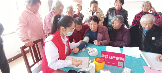 2020年第11個(gè)全國(guó)“敬老月”和第八個(gè)“老年節(jié)”,團(tuán)市委聯(lián)合周口婦產(chǎn)醫(yī)院走進(jìn)西華縣李方口村開(kāi)展敬老愛(ài)心義診活動(dòng)。圖為義診現(xiàn)場(chǎng)。(記者 馬月紅 攝)