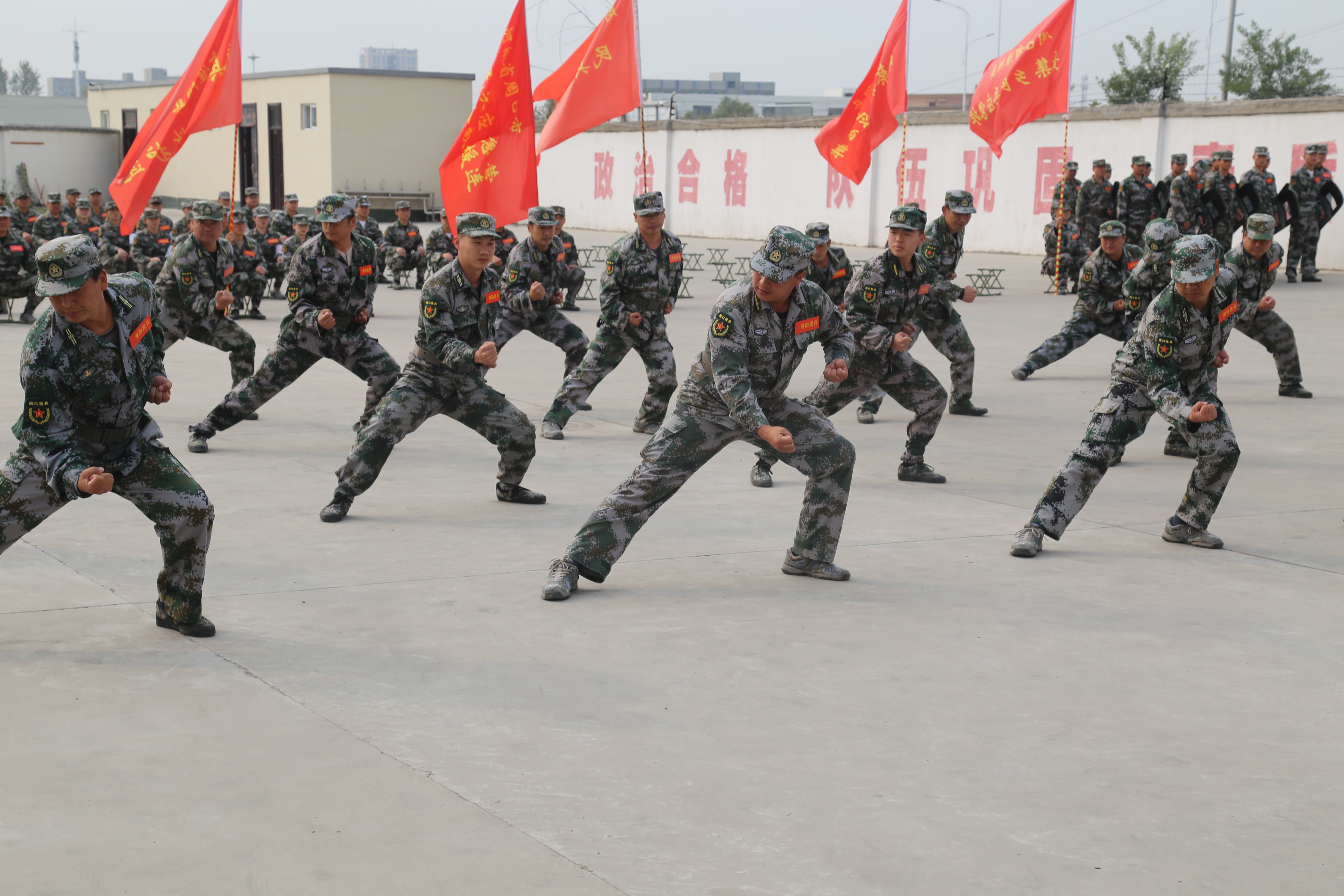 成果匯報(bào)現(xiàn)場(chǎng),殺聲震天,紅旗招展。軍體拳、警棍盾牌操、戰(zhàn)場(chǎng)救護(hù)、摔擒訓(xùn)練、單個(gè)軍人隊(duì)列動(dòng)作、防爆隊(duì)形、隊(duì)形運(yùn)動(dòng)等訓(xùn)練項(xiàng)目一一上演,每位民兵的一舉一動(dòng)、一招一式,都展現(xiàn)了基干民兵“聽黨指揮、能打勝仗、作風(fēng)優(yōu)良”的強(qiáng)軍目標(biāo),展現(xiàn)了大家召之即來、來之能戰(zhàn)、戰(zhàn)之必勝的優(yōu)良作風(fēng),受到了軍地領(lǐng)導(dǎo)的一致好評(píng)。