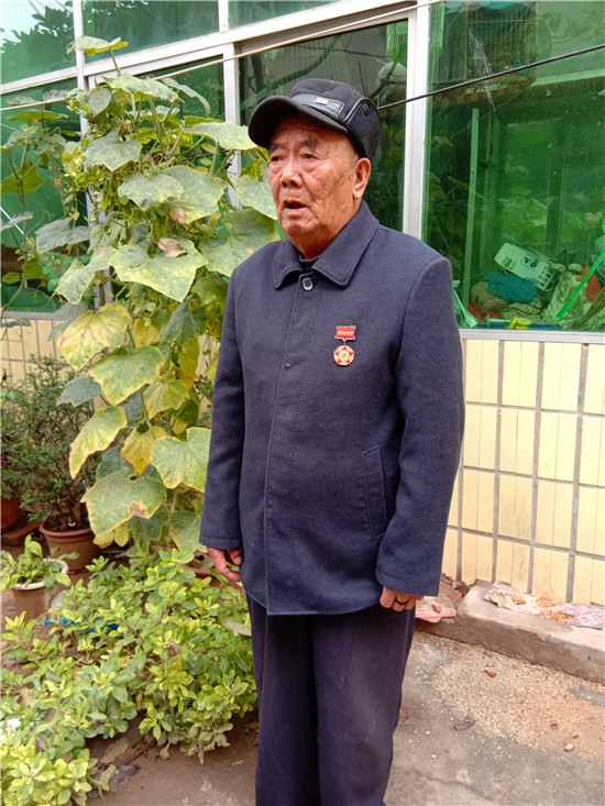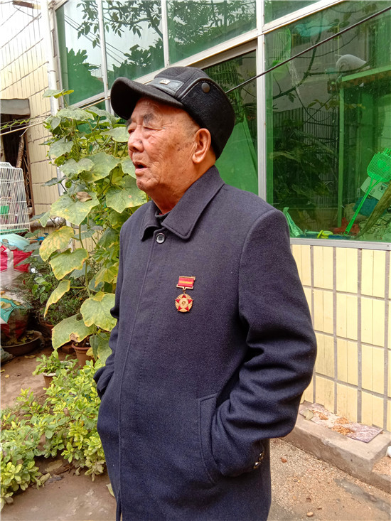 快到王景文家時,記者與他取得了聯(lián)系,沒想到他竟到路口來迎記者,看到他硬朗的身板和健康的身體,聽他說話聲音洪亮、底氣十足,記者還是很欣慰的,畢竟經(jīng)歷了70年的風雨洗禮,還能行走自如、聲如洪鐘,的確是寶刀不老。被他迎進家,其老伴滿頭銀發(fā),喜瞇瞇地讓記者進屋,王老先生去里屋找出了一枚抗美援朝紀念章,并說抗美援朝和平紀念章等物品都放丟了,找不到了,有些遺憾。記者就開門見山地說要聽他講講參加抗美援朝的故事,他不好意思地笑了:“講不好,年齡大了,記性不好,有好多事都記不清了……”當問起他老家是哪里時,王老先生還是打開了話匣子。1934年,他出生在淮陽縣劉振屯鄉(xiāng)耿樓大隊李樓村,由于家境貧寒,他從小就跟隨家人一路逃荒要飯來到了扶溝,但日子還是艱難,為了能活命,父母無奈把他送給了扶溝縣城一戶人家,從此他就成了這戶人家的孩子,并于1951年5月結(jié)婚??山Y(jié)婚沒幾個月,縣里就開始征兵了。當兵離家,要丟下妻子,更何況妻子已有孕在身,他真舍不得;保家衛(wèi)國,是義務是責任是擔當,他責無旁貸。家與國,他毅然選擇去當兵。與新婚燕爾的妻子依依惜別,他踏上了行軍的征程。那時可沒有車接送,去往目的地,全靠兩條腿,行軍與訓練的苦與累難以想象。問他不害怕當兵打仗嗎?他回答:“不怕!”語氣堅定而有力。生活的磨難讓他對安穩(wěn)的生活有一種渴望,他明白戰(zhàn)爭會讓國家陷入混亂不堪的局面,老百姓的生活會更加艱難,為了祖國的和平安寧和兄弟姐妹的幸福,他愿意去當兵打仗。保家衛(wèi)國的種子早已種在了他的心里。