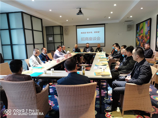 此次鄭州招商推介活動成果豐碩,招商工作組相繼考察了福通控股、中駿集團、路港集團、久居香等企業(yè)21家,舉辦招商推介會3場,會談企業(yè)代表和各界人士230多人,收集招商信息、洽談項目22個,總投資63億元,涉及現(xiàn)代農業(yè)、文化旅游、健康養(yǎng)老、食品加工、風力發(fā)電、汽車制造等多個領域。此次招商推介活動,達到了“落實一項原則,趟出一條路子,達成一批意向和成果”的預期效果。
