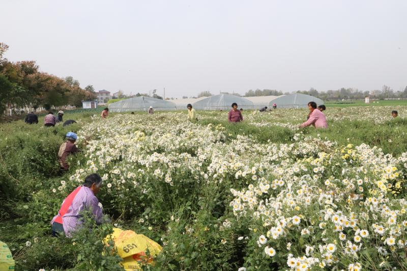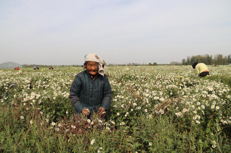 原來(lái),菊花田的老板叫晉振中,于2018年從全縣脫貧攻堅(jiān)種植信息渠道得知種菊花能致富,銷(xiāo)售的末端是安徽亳州的藥材市場(chǎng)和一些花茶商家。特別是種植方式和平原種植紅薯一樣,把田地打成壟,栽苗、施肥、澆水、除草,9月份采摘一次、11月份采摘一次,剩下的菊花秸稈粉碎到田間作為肥料,還能種植晚小麥,十分方便。于是,他通過(guò)鎮(zhèn)村兩級(jí)黨員干部協(xié)助流轉(zhuǎn)了100畝土地,2019年就掙了20多萬(wàn)元。由于晉菜園村是貧困村,在他的菊花田務(wù)工的勞動(dòng)力大多是貧困戶,能帶動(dòng)近百戶貧困戶脫貧致富,晉振中欣慰地覺(jué)得自己為脫貧攻堅(jiān)做了一份大貢獻(xiàn)。