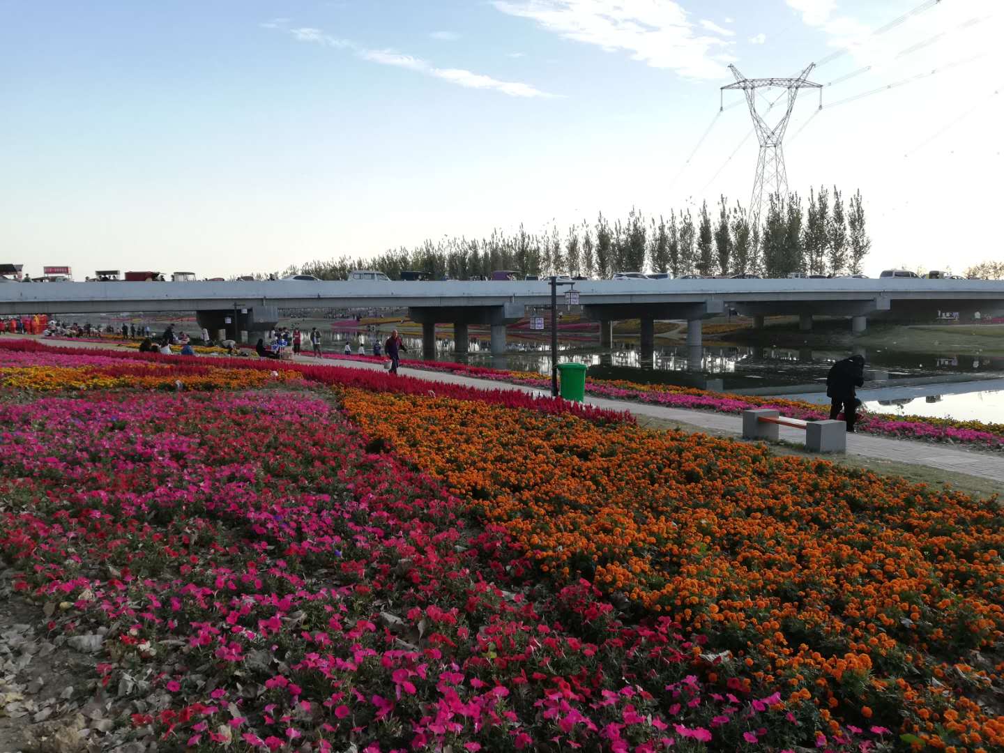 11月8日,市民在商水縣高標(biāo)準(zhǔn)農(nóng)田灌溉渠兩岸游玩。