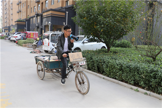 行駛30多分鐘后,劉啟昌來到太康縣城鑫港灣小區(qū),打開喇叭開關(guān),吆喝了起來:“誰家賣書,誰家有多余的書籍賣……”聽到吆喝聲,居民崔海英從家里抱出來一摞書?!叭亲魑臅?,學(xué)生看了對寫作有好處。”崔海英把書遞給劉啟昌說。