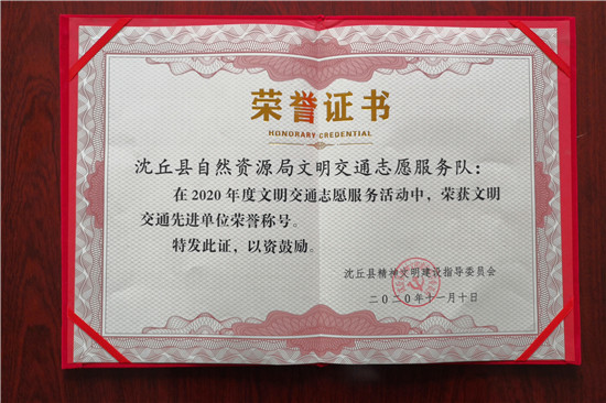 為大力弘揚(yáng)“奉獻(xiàn)、友愛(ài)、互動(dòng)、進(jìn)步”的志愿服務(wù)精神,樹(shù)立典型、激勵(lì)先進(jìn),近日,沈丘縣精神文明建設(shè)指導(dǎo)委員會(huì)對(duì)2020年度文明交通志愿服務(wù)活動(dòng)情況進(jìn)行通報(bào)表彰,全縣25家部門單位文明交通志愿服務(wù)隊(duì)、101名文明交通優(yōu)秀志愿者受表彰,沈丘縣自然資源局名列其中。