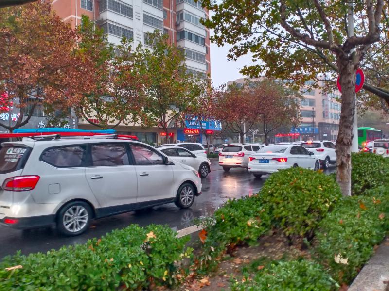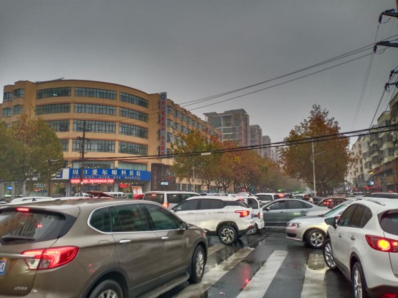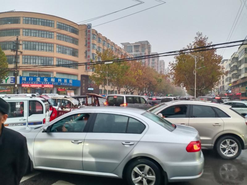 11月17日7時(shí)30分許,天空下起了小雨,在這樣的天氣里,開(kāi)車出行的市民多了起來(lái),記者在周口中心城區(qū)建安路與育新路交叉口附近看到,過(guò)往車輛把這里堵了起來(lái),車輛前行緩慢。③7
