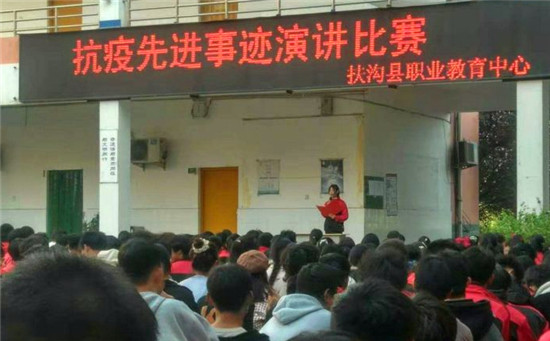 這是扶溝縣職業(yè)教育中心2020級美術(shù)班賈珍珍同學(xué)的激情演講。他的演講,感染了在場的1000余名師生。11月14日,為落實(shí)扶溝縣教體局《關(guān)于加強(qiáng)新時代中小學(xué)思想政治理論課教師隊(duì)伍建設(shè)工作的實(shí)施方案》中“發(fā)掘地方資源,開展先進(jìn)人物和紅色教育進(jìn)課堂活動,讓思政課成為有溫度的課”的具體要求,學(xué)校思政處組織開展了以歌頌該縣人民醫(yī)院護(hù)士劉海燕先進(jìn)事跡為主題的“抗疫先進(jìn)事跡”演講比賽。